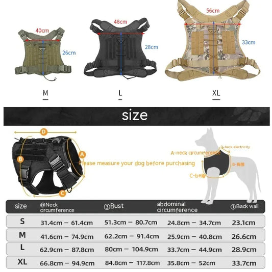 Adjustable Camouflage Tactical Nylon Dog Harness & Leash