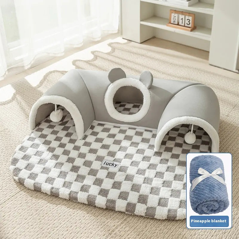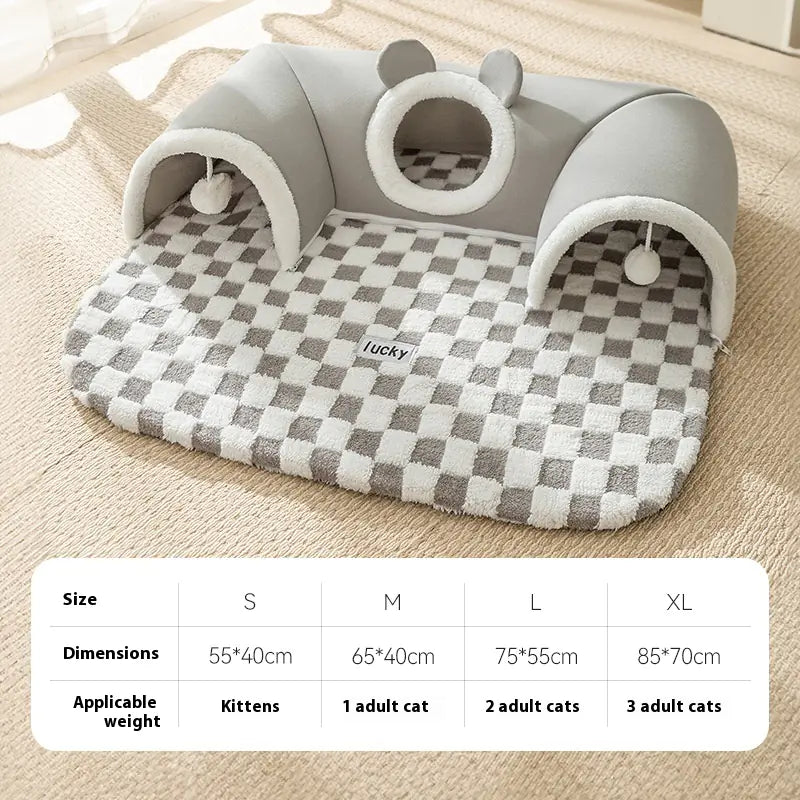 Give your cat a space to play and rest with this cozy tunnel nest, made of comfortable cotton velvet. Features various fun designs and sizes to fit all felines.